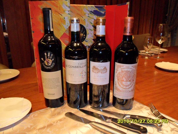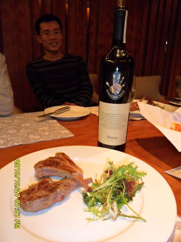 2008 Handpicked Shiraz Barossa(Rolf Binder signature series) 澳洲红:是我本周尝试的最高级别的澳洲酒了。酒裙深紫明亮,典型澳洲风格,浓郁讨好,香草、黑果、橡木等多种气味混为一体;质感饱满平衡,活力充沛,单宁柔顺,收结干净,余味短。配澳洲牛羊,简单对乏味是有道理,不过自己惯于食原味,扒肉不加汁酱,故四酒均无收效。