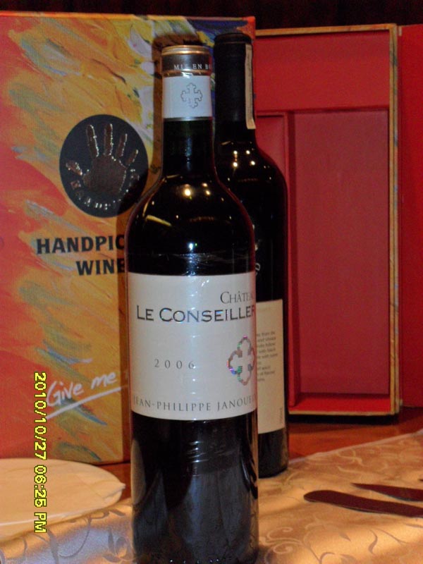2006 Chateau le conseiller是JEAN-PHILIPPE JANOUEIX作品;深紫,开始草椒辛辣占主导,后来酱槡枣带出酱莓、泥木厚实、坚果复杂气味;质感细致浑厚,稍微酒精、酸咸、矿物味凸出,导致入口生硬,酸咸残留,结构未够扎实,余味中等。