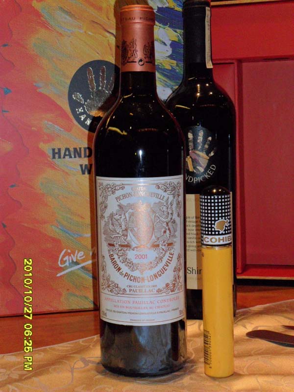 2001 Chateau Pichon-longueville Baron 碧尚男爵,醒酒未够时间,无惊喜。酒裙深紫,边缘细腻,酒带变化微妙,聚于酒眼;气息细腻内敛,微弱咸苦带出平衡,似香草、黑莓酱等夹杂木头泥土各种气味,就是闻不到黑醋栗!口感柔软圆润,丹宁细致绵密,就是无力!无爆炸感!收结隐约残留咸酸,酒架集中。大酒风范始终领略到,却饱满层次就出不来!对大酒而言,侍品、心情也非常重要。