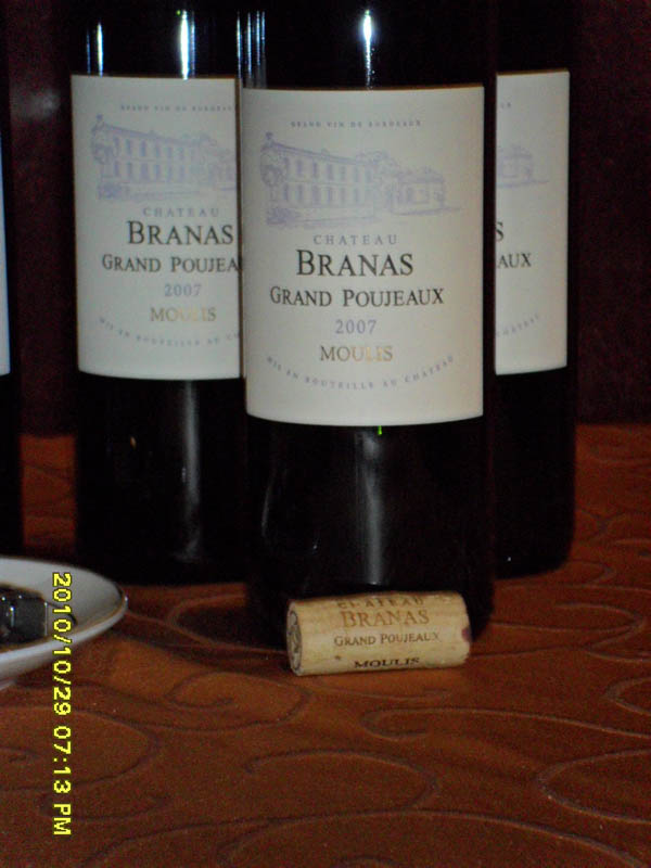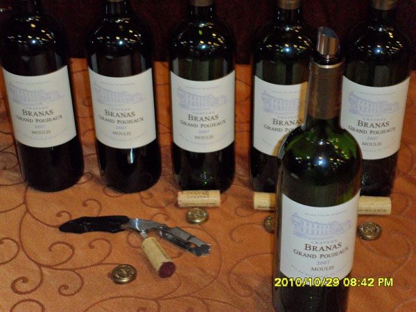 朋友在骏德买来六支左岸MOULIS村庄的 2007 CHATEAU-BRANAS GRAND -POUJEAUX布魯斯红。