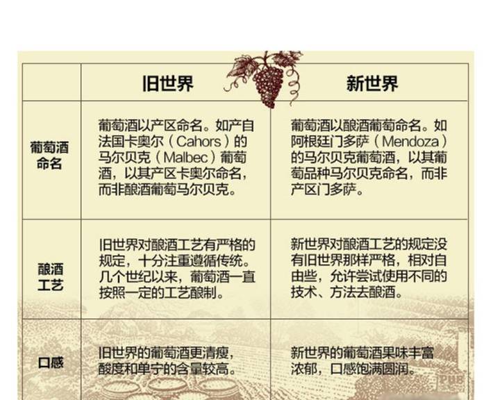 简单地理解,从视觉上说,新世界的酒包装、生产环境比较工业化(其实旧世界很多酒庄也早就引进现代化的生产线了),价格也比较亲民、实惠。