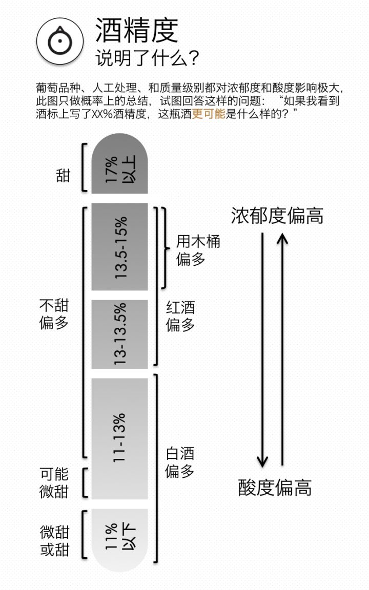 但如果一个酒的酒精度过低(<11度)或过高(>17度),都说明这款酒很有可能是甜的。为什么呢?