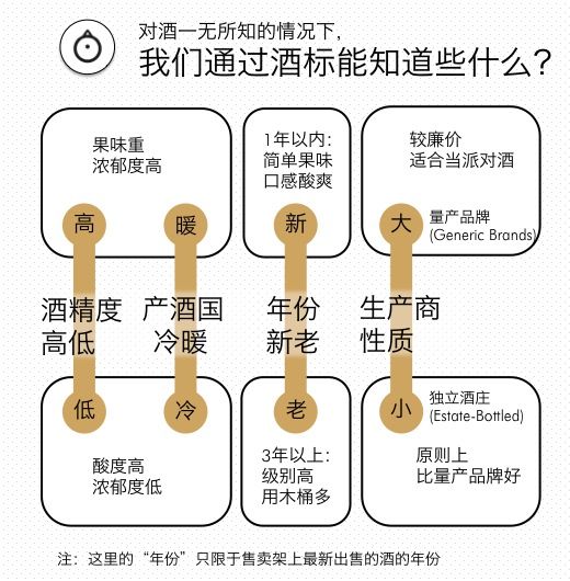 (细心的童鞋可能会发现我并没有把“品种”和“产区”列入线索之内——虽然品种和产区是决定风格和质量的最大因素之二,但这些信息对于小白来说太过专业啦!)