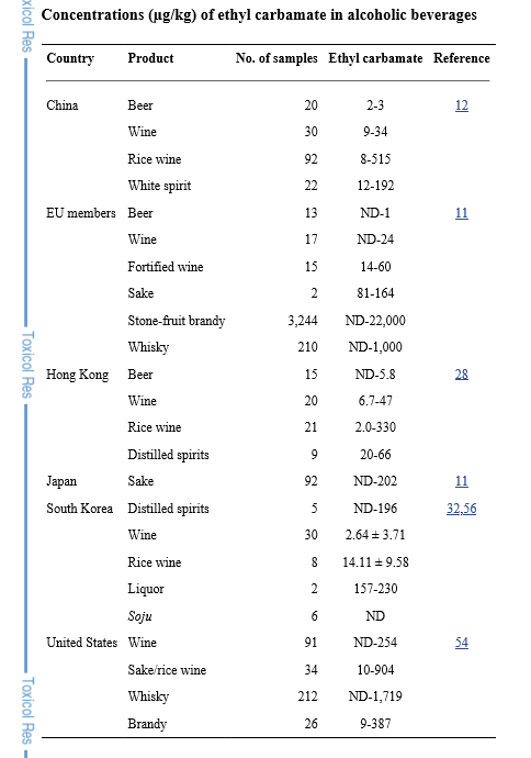 rt~求问欧盟或者美国或者其他国家是否已经有酒类中氨基甲酸乙酯含量的标准或者规定 谢谢大神解答~~
