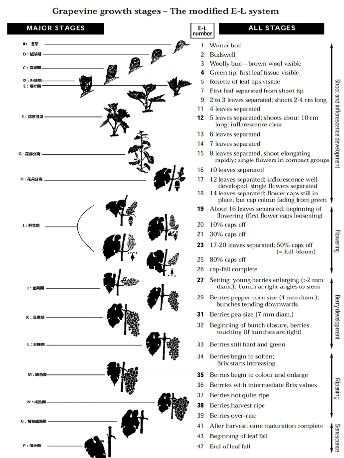 Phenological (growth) stages of the grapevine – the modifi ed E–L system.