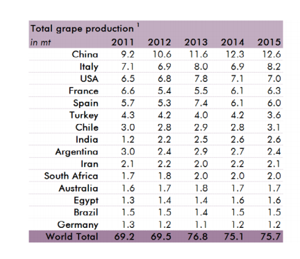OIV关于中国葡萄产量的统计